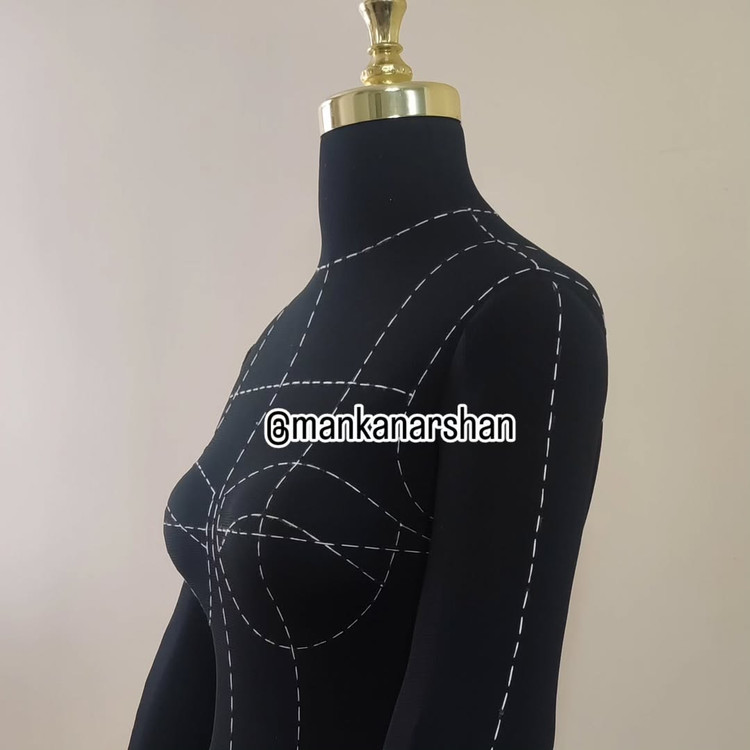 مانکن خیاطی سوزن خور خطوطدار دکلته دار ماهی نیلوفری(مولاژ) دستدار سایز 40