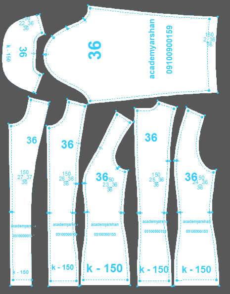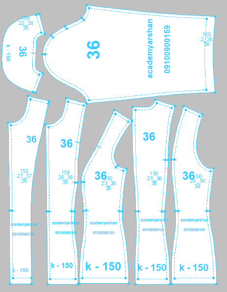 قطعات الگو پیش -پشت -آستین - سجاف -سجاف پشت یقه