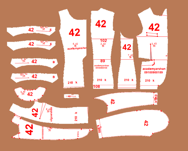 الگوی آماده کت زنانه شامل دو یقه انگلیسی و بلیزر میباشد.( تیپ کت مردانه) دو برش پهلو همراه الگوی آستر برای تمام سایز ها و استین کتی دوتکه میباشد.. الگوها لقی گرفته شده همراه درز زاپاس دوخت میباشد کد 210