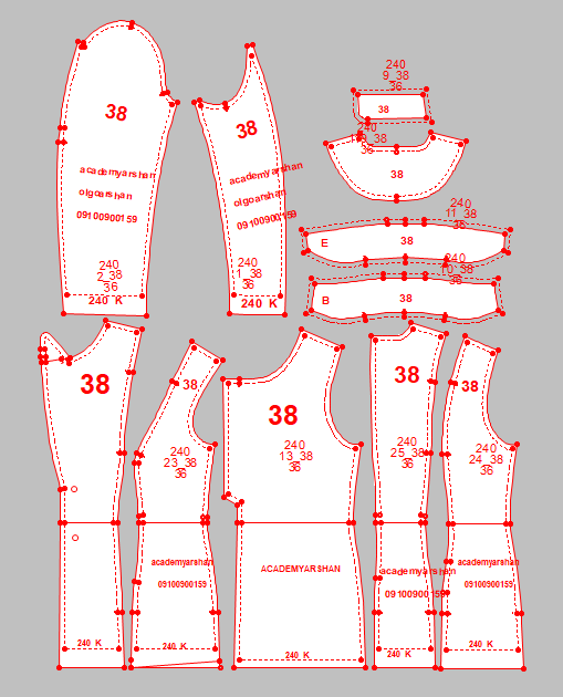 الگوی آماده کت زنانه شامل دو یقه انگلیسی و بلیزر میباشد.برش سرشانه به همراه الگوی آستر برای تمام سایز ها و استین کتی دوتکه میباشد.. الگوها لقی گرفته شده همراه درز زاپاس دوخت میباشد کد 240